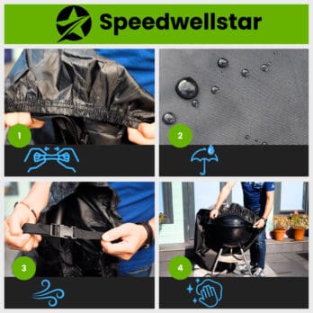 Installation is quick and easy. Simply slide the elastic cover over the BBQ and tighten the adjustable strap for a secure fit. Then, tuck any remaining fabric under the legs for added stability.